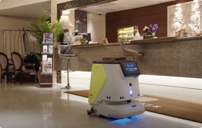 These AI-powered hotel robots can work around the clock, ensuring that public areas, hallways, and guest rooms are consistently clean.