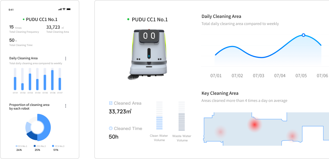 Receive real-time notifications and reports on cleaning performance, including data on cleaning time and area.