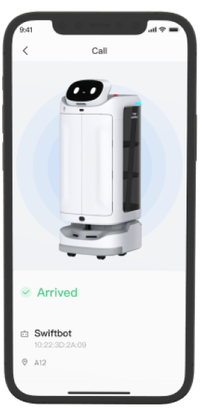Powered by loT technology, the robot calls and takes the elevator automatically for delivery across floors.